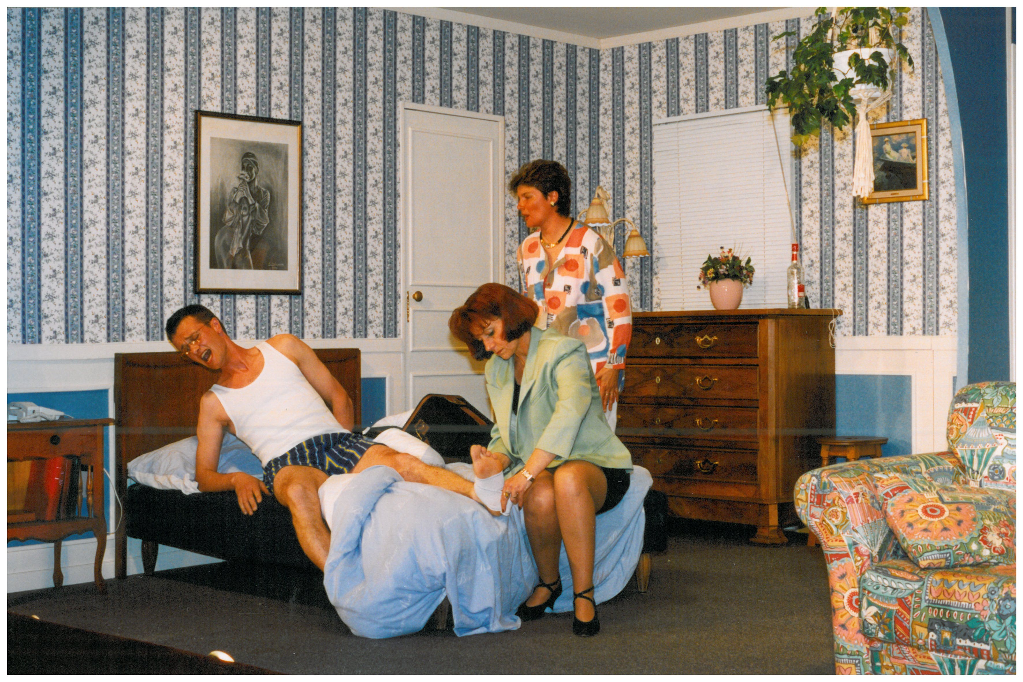 "Au saut du lit" on y saute de quiproquos en malentendus, avec une habilité déconcertante, des situations cocasses ou tout le monde y perd son identité.