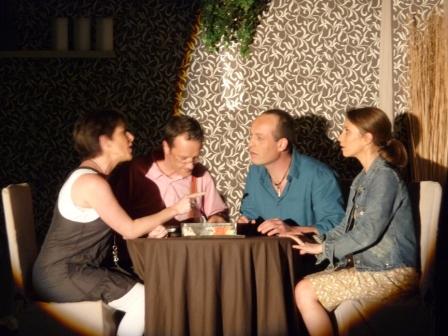 Yan, un peintre réputé, Florence son flirt du moment, Boris un artiste maudit et Eva la fiancée de Boris. Remuez vigoureusement. Faites monter /descendre dans l’ascenseur ou passer le tout par la fenêtre, en tenue sélecte ou en lingerie coquine, vous obtiendrez : un vrai Vaudeville à la Feydeau !