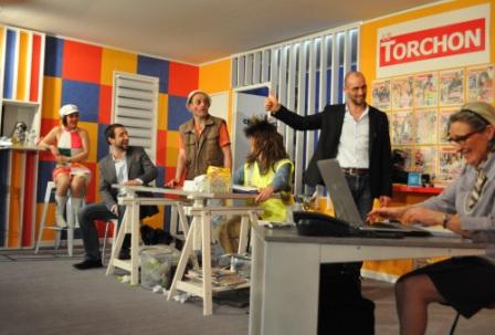 La salle de rédaction du sulfureux magazine pipole « Le Torchon ».